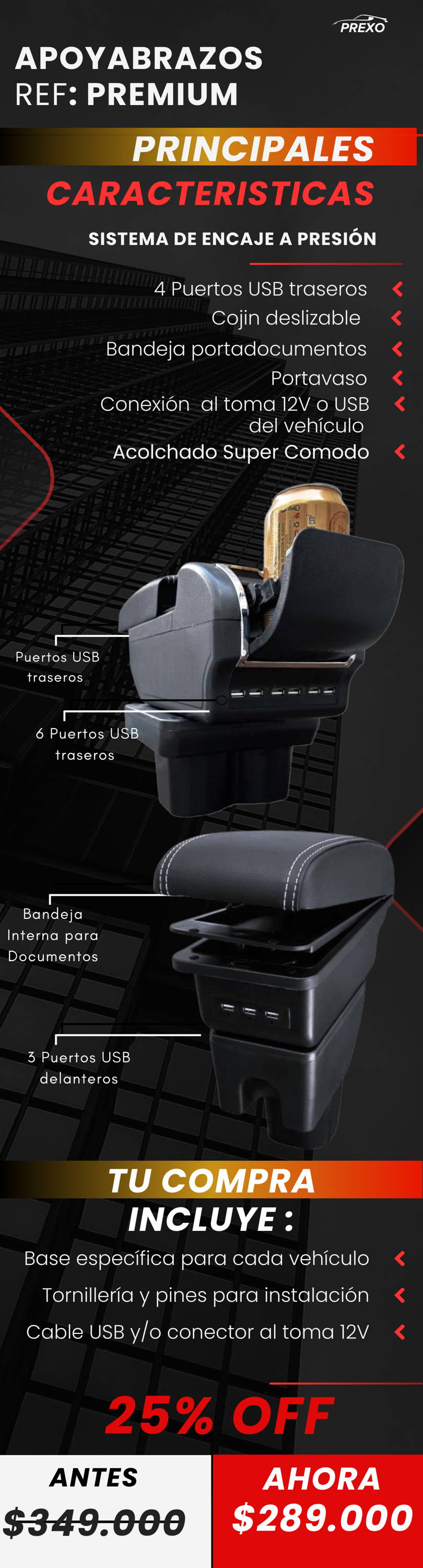 - Material Base: ABS Automotriz de alta resistencia.