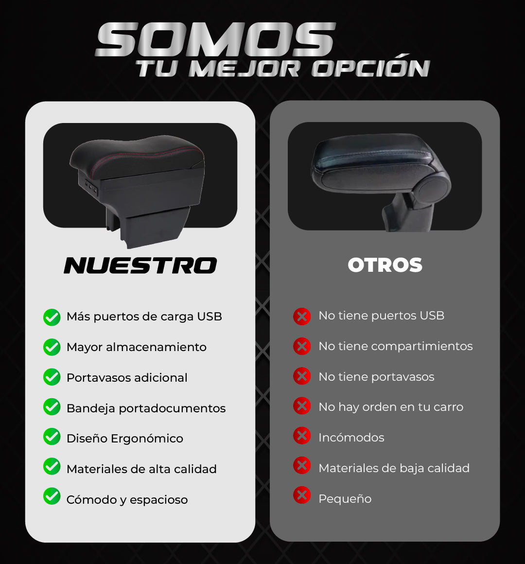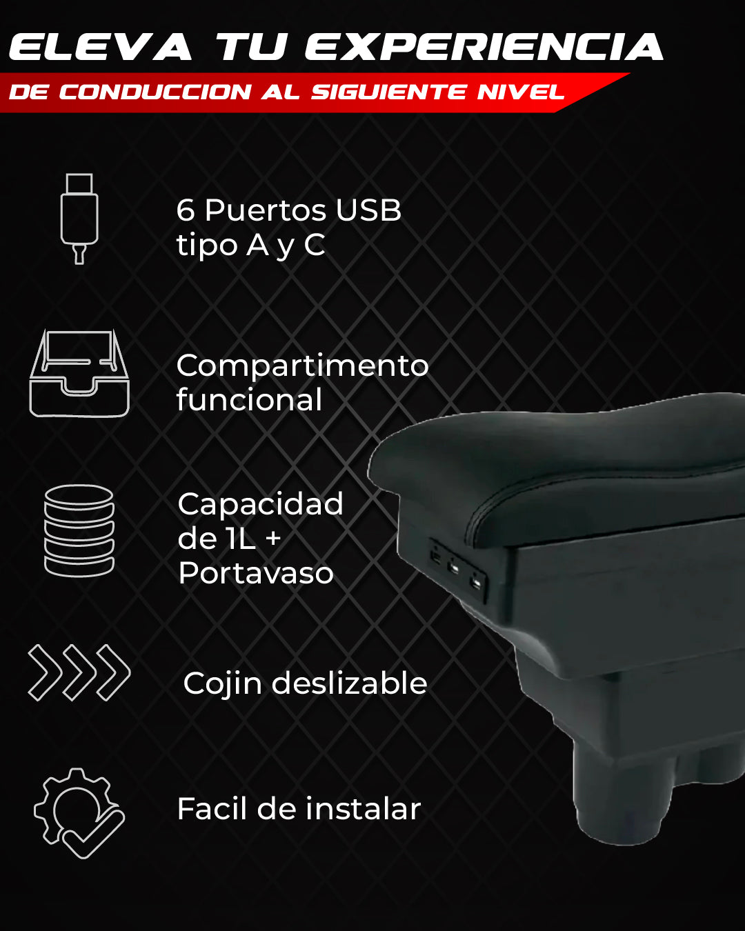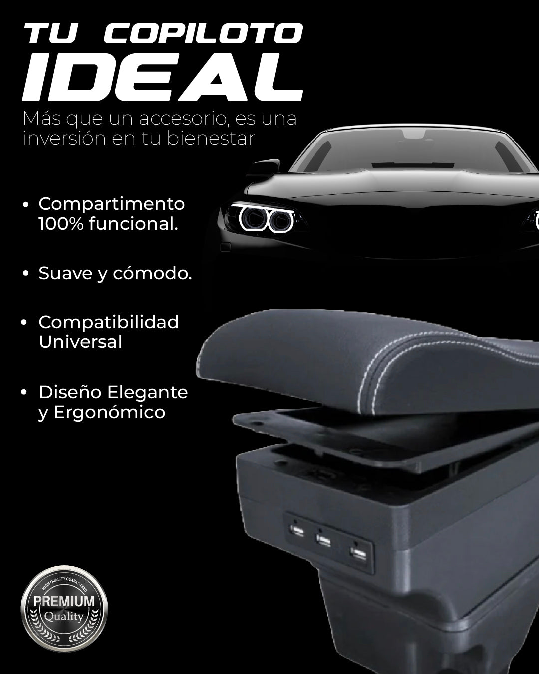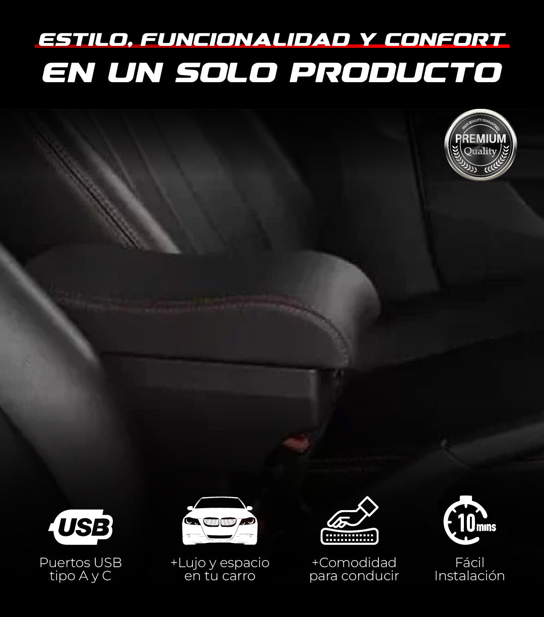 Apoyabrazos para auto de diseño ergonómico, con espacio de almacenamiento y un toque estético que mejora la experiencia dentro del vehículo.