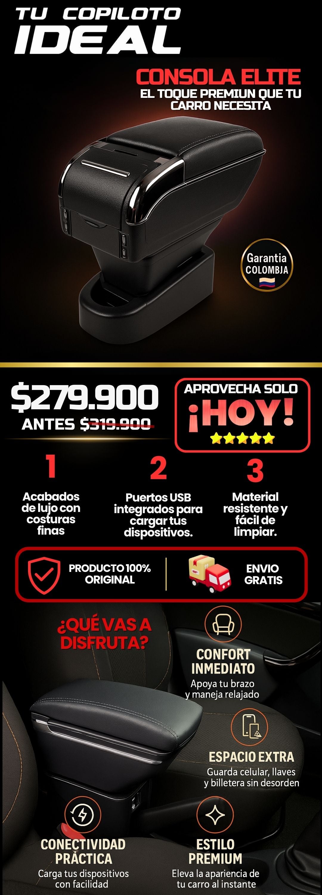 Proporciona comodidad, apoyo ergonómico, conexión para tus dispositivos y una solución práctica de almacenamiento, mientras mejora la apariencia del interior del auto.